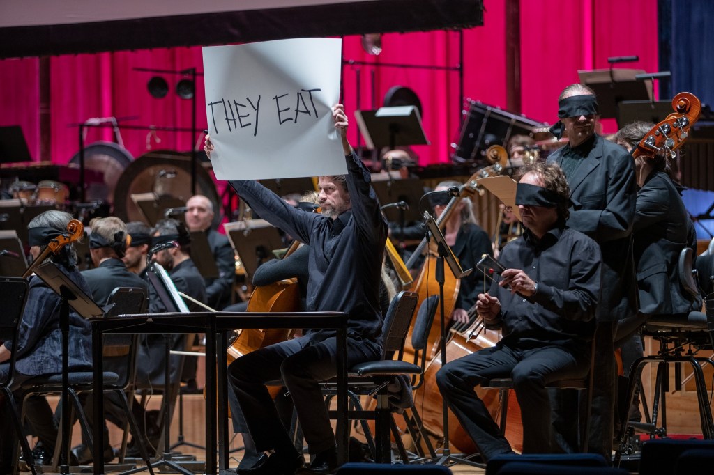 For their 22/23 season tour through Germany and Belgium, I have contributed a new commission for Basel Sinfonietta – under the musical direction of Baldur Brönnimann. To be be performed by a largely blindfolded orchestra, Losing the Red Queen’s Race for orchestra was be performed alongside the Piano Concerto by Simon Steen-Andersen and György Ligeti’s San Francisco Polyphony